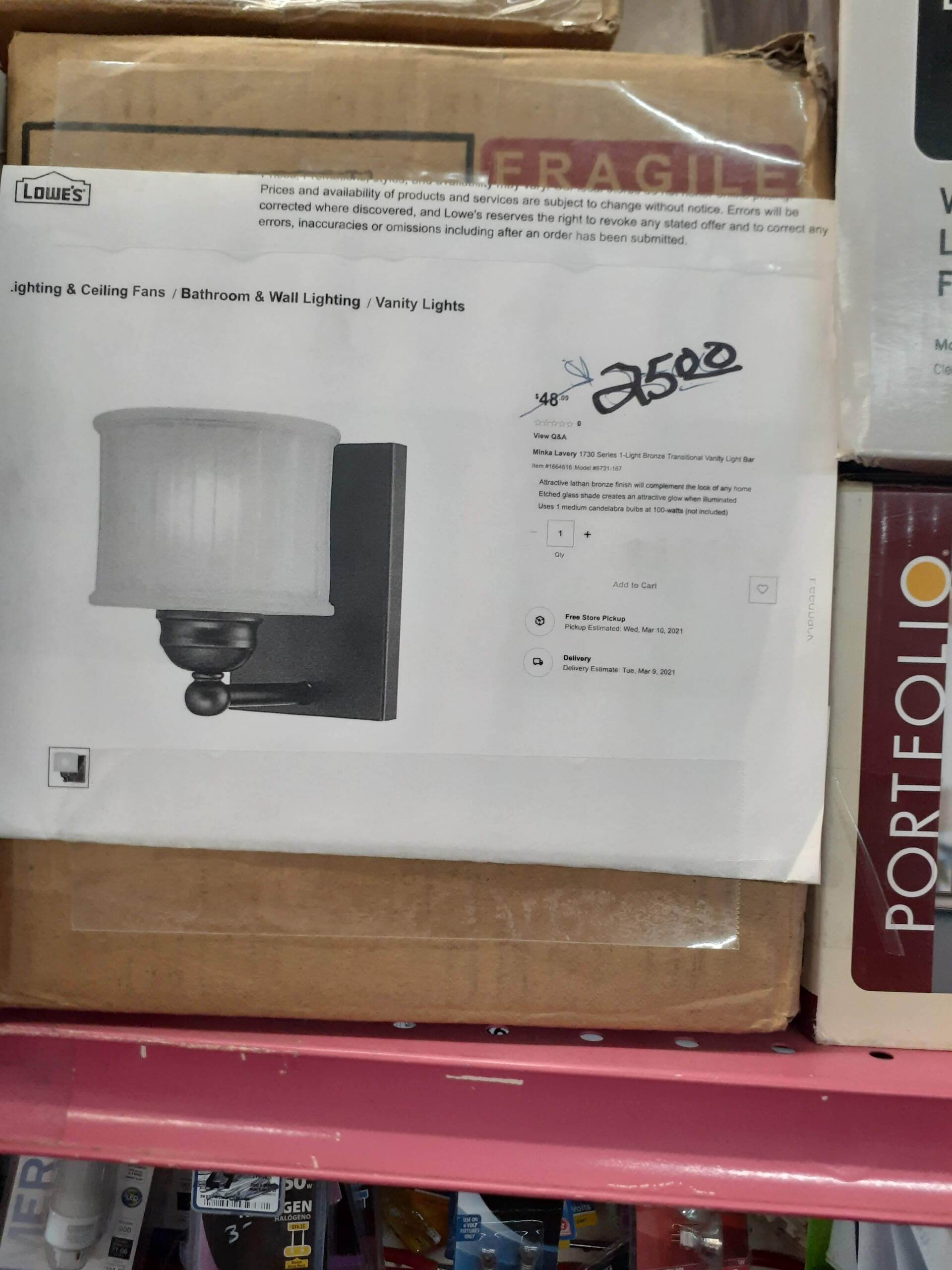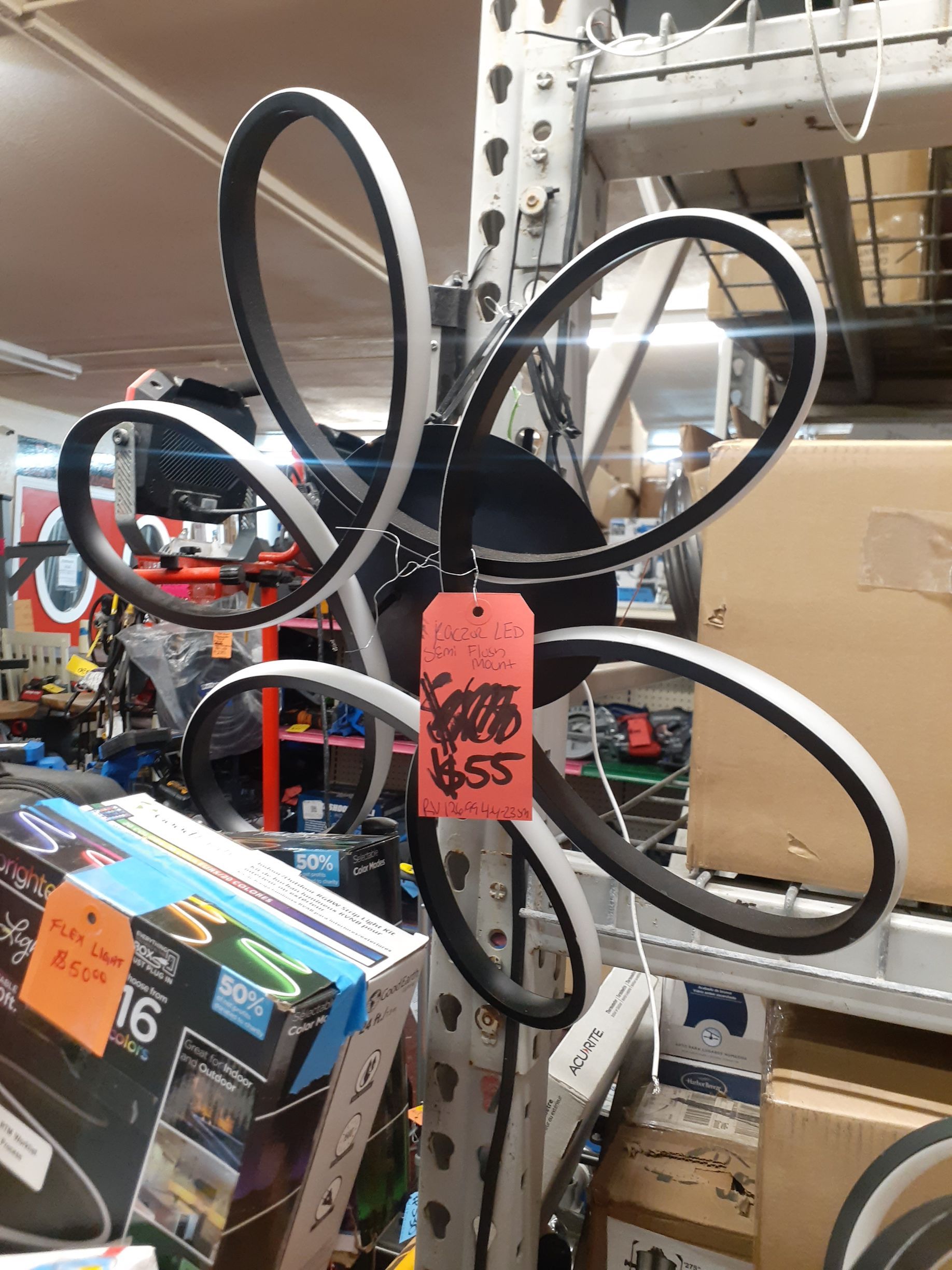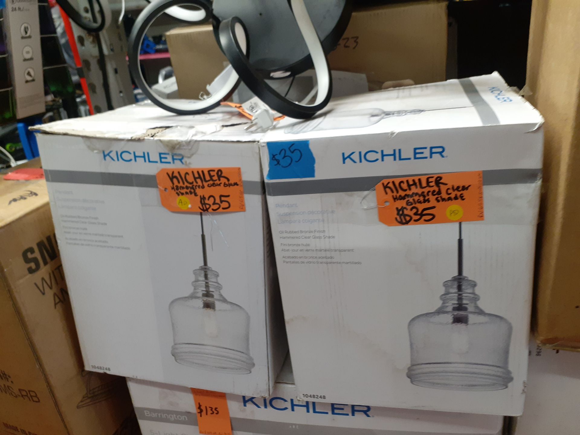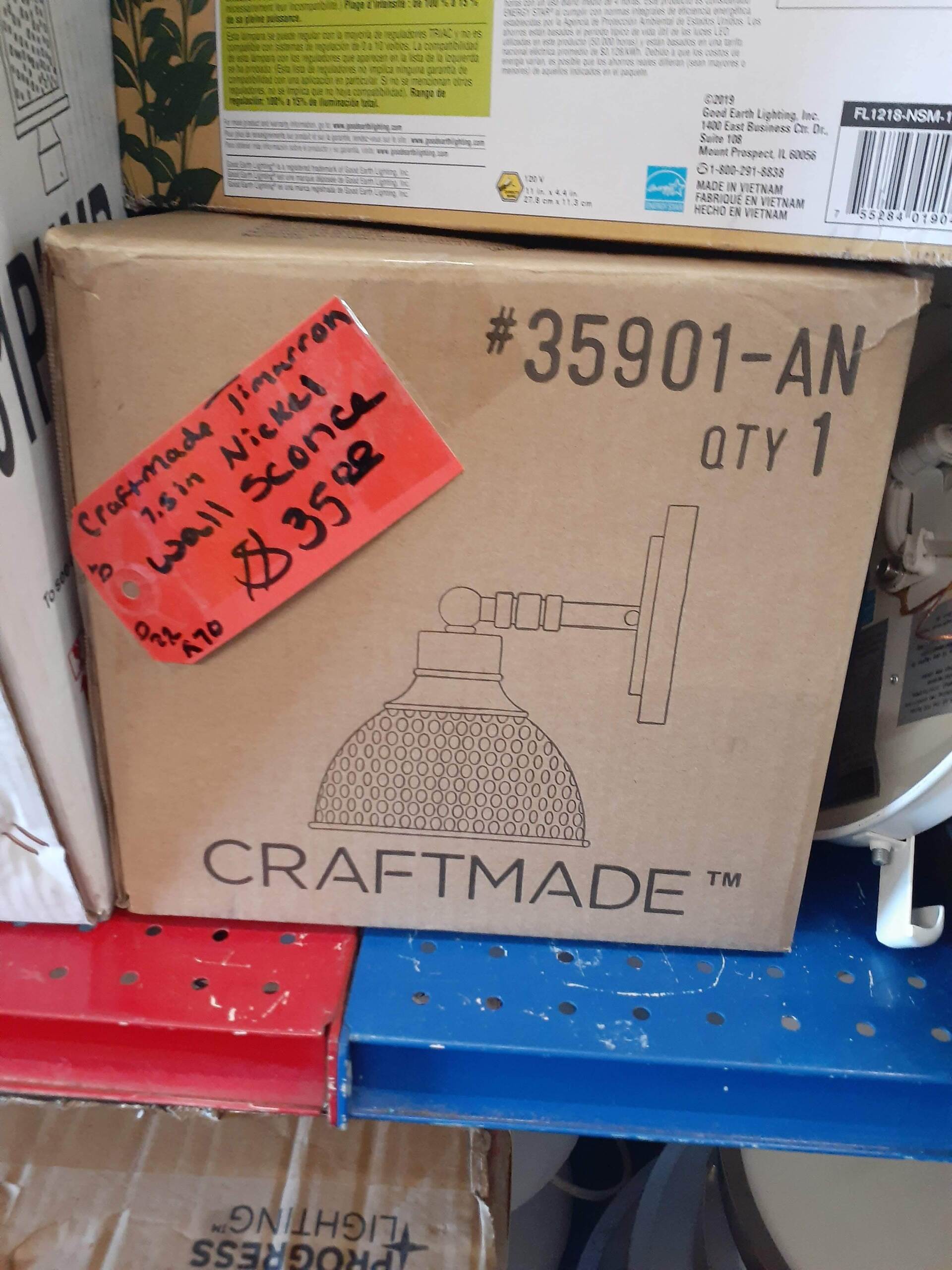We have so much more than we show here! Most of our lighting is priced half off of retail value! Most brand new in the box, some out of the box. All are warrantied! Bathroom Vanities, Wall Sconces, Lighted Mirrors, Chandeliers, Outdoor Lights, Porch Lights, Security Lights, Can Lights, Kitchen Lighting, Path Lights... and MORE!!!